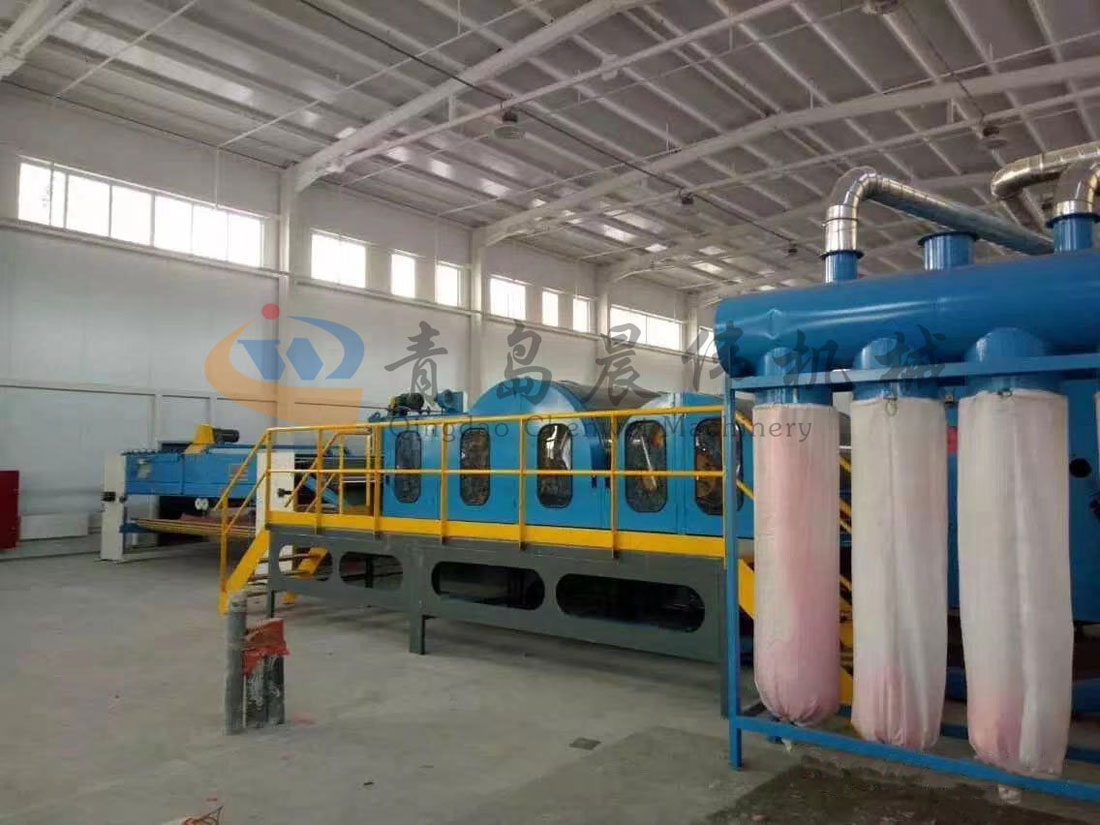 開包機(jī)-開松機(jī)-振動給棉機(jī)-梳理機(jī)-鋪網(wǎng)機(jī)-烘房-成卷切片機(jī)