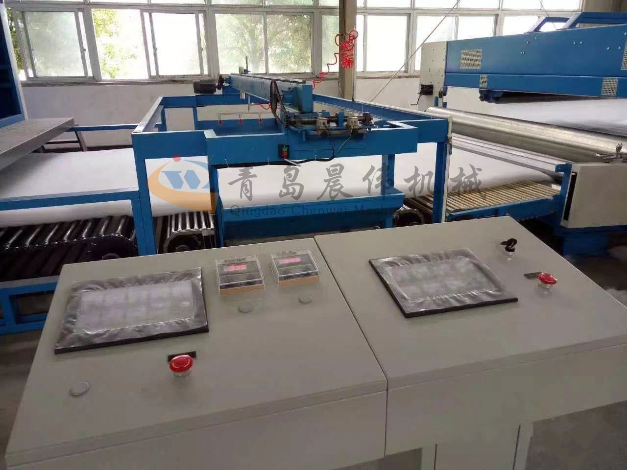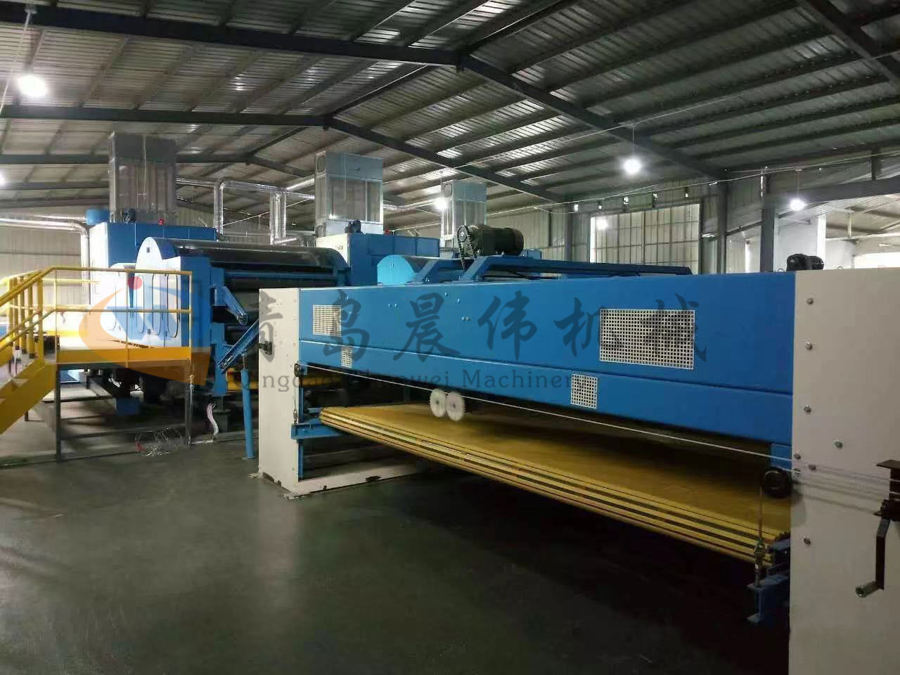 5. CWPW-鋪網機:用于將梳理纖網通過移動小車交叉折疊為所需幅寬和定量的多層纖網,以供后道工序使用。鋪網輥采用特殊結構,加裝壓網輥和導流板,不飄網不起皺,五只大功率電機精確控制各部件的運動,電動輸出簾高度調節(jié)裝置