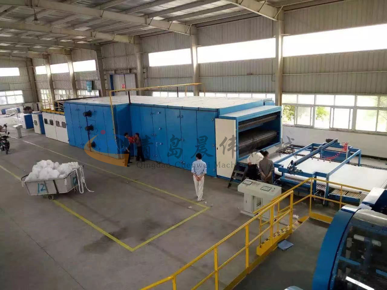 開包機-開松機-振動給棉機-梳理機-鋪網機-烘房-燙光機-成卷切片機