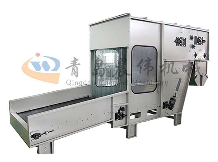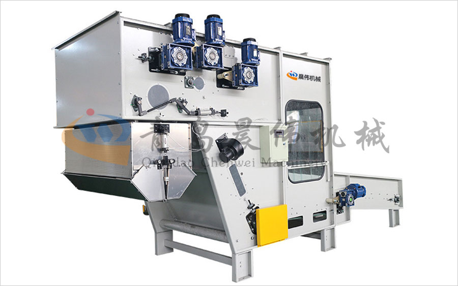 將各種等級整包或半包料進行初步打開,無需人工抖棉,降低勞動強度,通過稱重系統(tǒng)PLC計算進行準(zhǔn)確配比,均勻平鋪到長簾上。