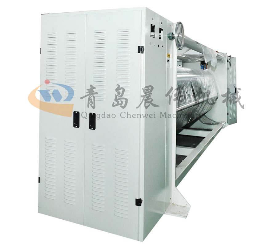 高溫高壓軋光處理,使之組織緊密,表面光整并達(dá)到規(guī)定的厚度和表觀要求。應(yīng)用于針刺棉和其它輕克重的非織造布如噴膠棉、仿絲棉、無(wú)膠棉的生產(chǎn)。